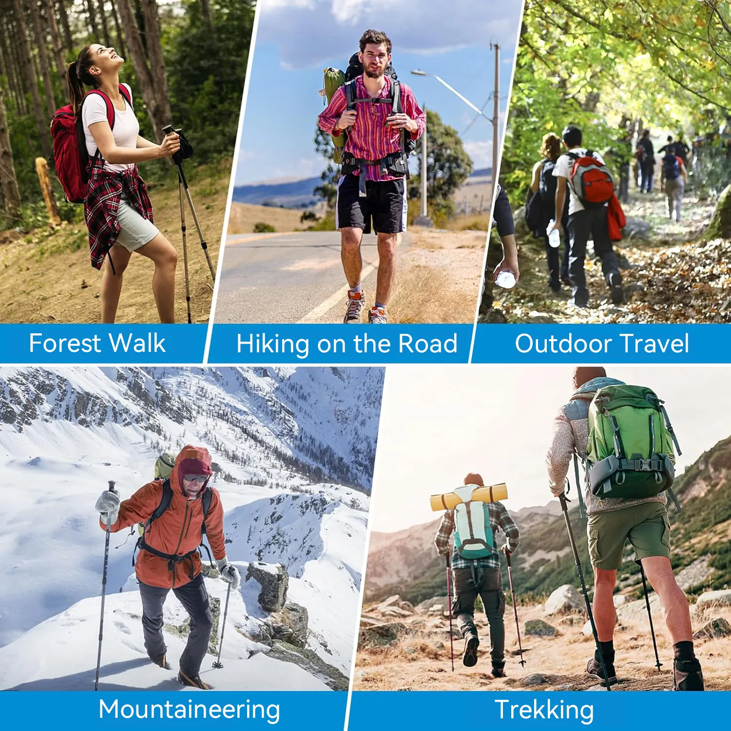 This trekking pole delivers true versatility with steady, reliable support across various outdoor activities. Whether you're on a calm Forest Walk, steady Hiking on the Road, challenging Mountaineering, adventurous Outdoor Travel, or long-distance Trekking, it adapts easily to different terrains. Designed for comfort, balance, and durability, it keeps every step secure and confident.